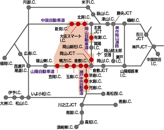 笠岡駅まで・・・・・・約1時間(高速道利用)