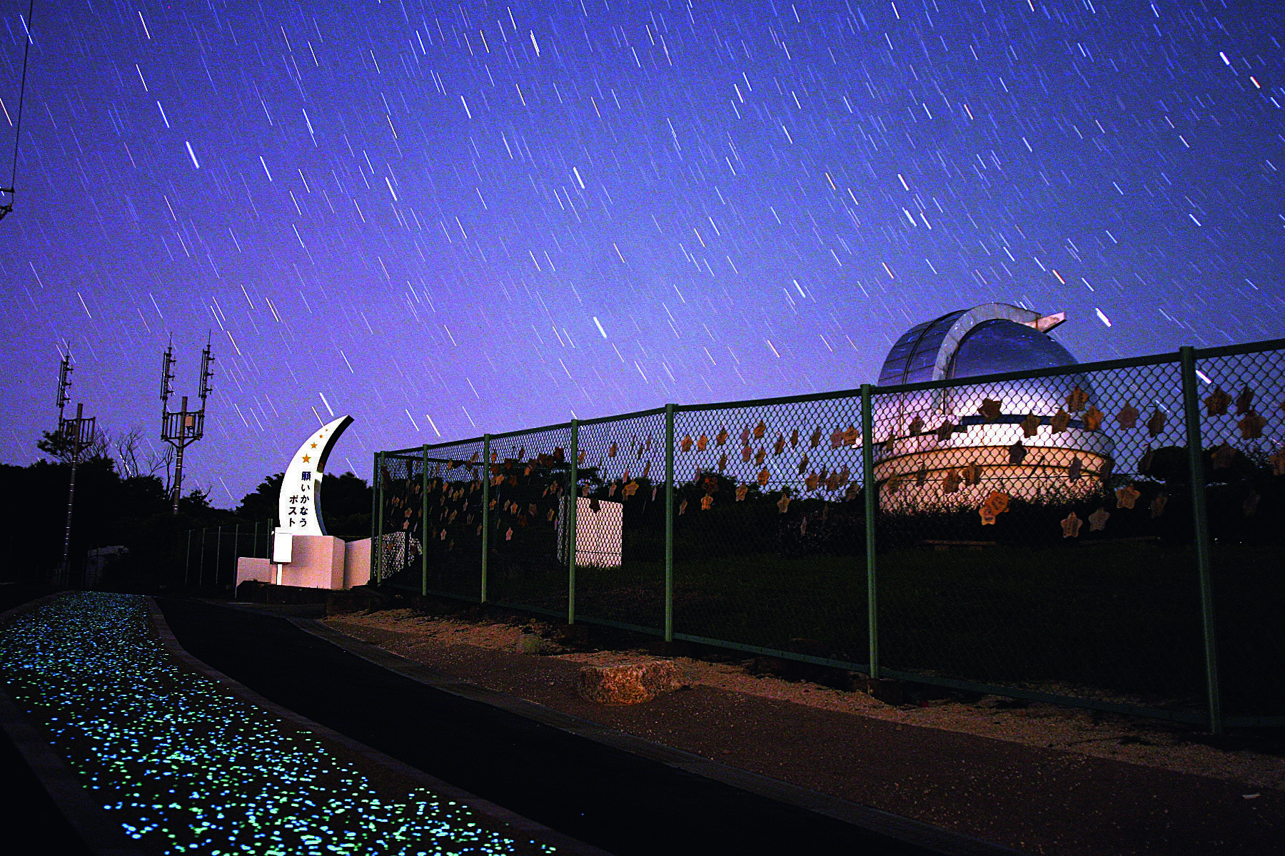 標高500mの大倉龍王山にあり、天文学者が選ぶ「日本三選星名所」に認定された眺望抜群の公園。年に数回開催される観望会では、季節の天体を鑑賞できます。頂上へ続く「願いかなう小径」には蓄光石が散りばめられており、夜になると淡い光を放ち、幻想的な雰囲気を醸し出しています。