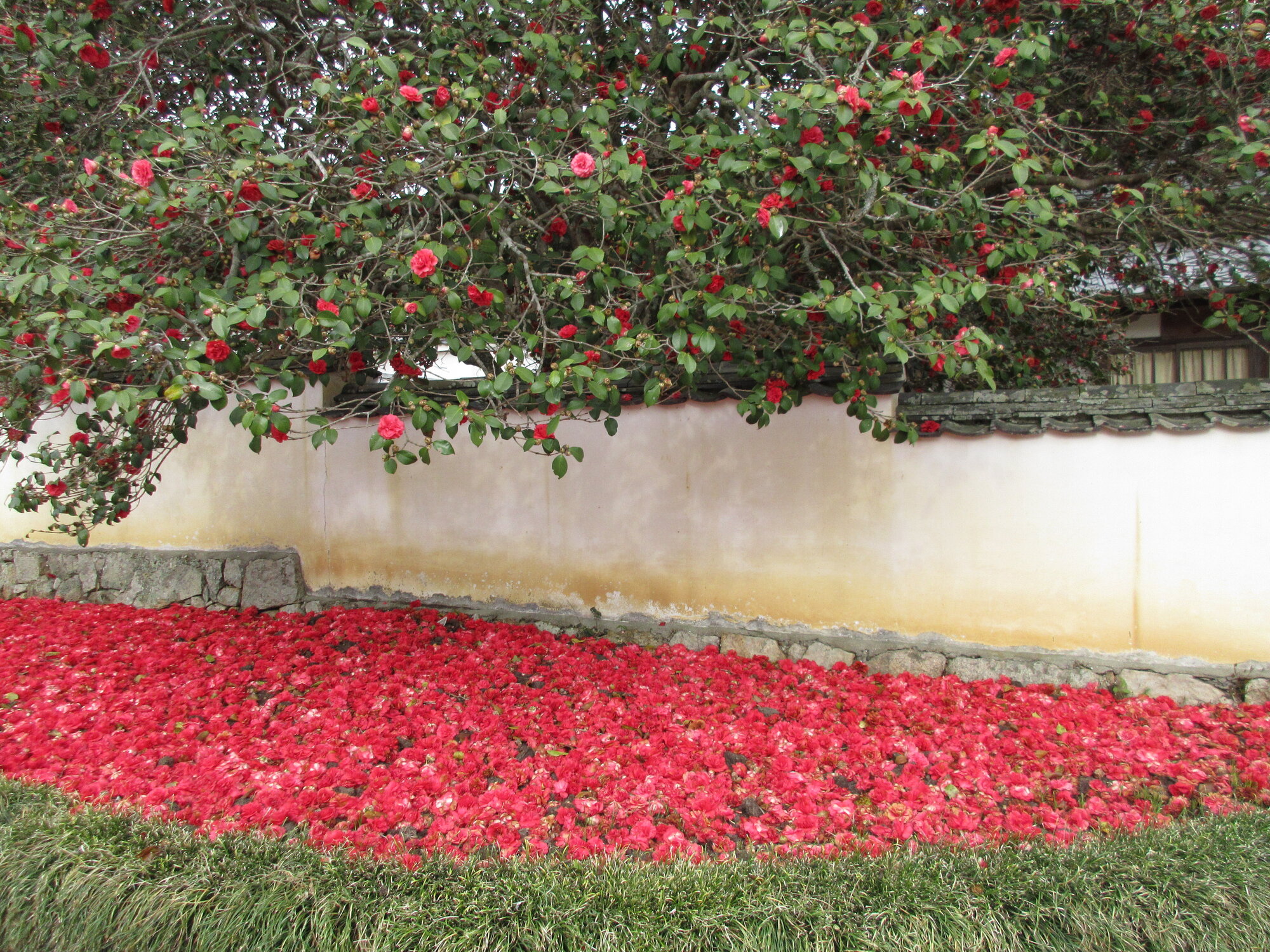 境内にはの樹高8m、樹齢350年を超えるといわれる大椿(町指定天然記念物)があります。4月上旬から中旬にかけて八重の花をつけ、花の散った後も美しく、まるで赤い絨毯を敷いているかのようです。毎年4月の第2日曜日を中心に「つばき祭り」が行われ、境内が公開されます。