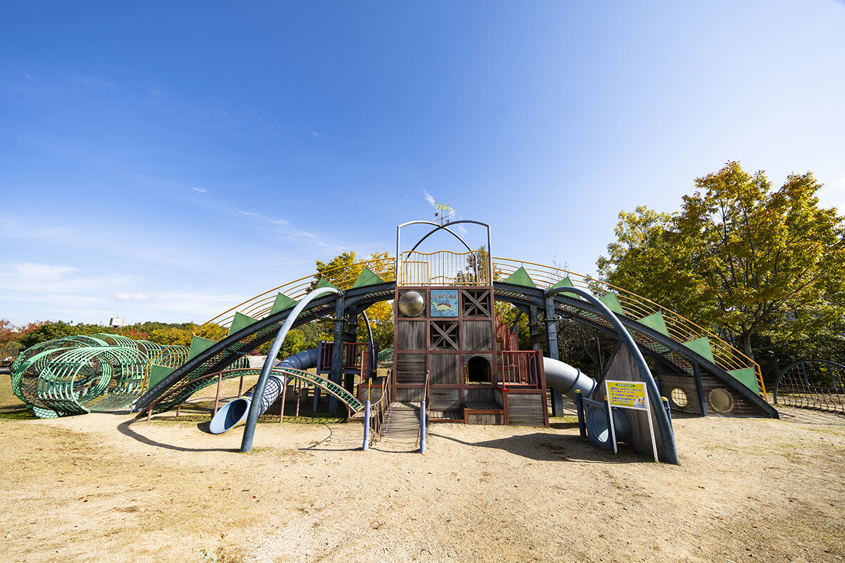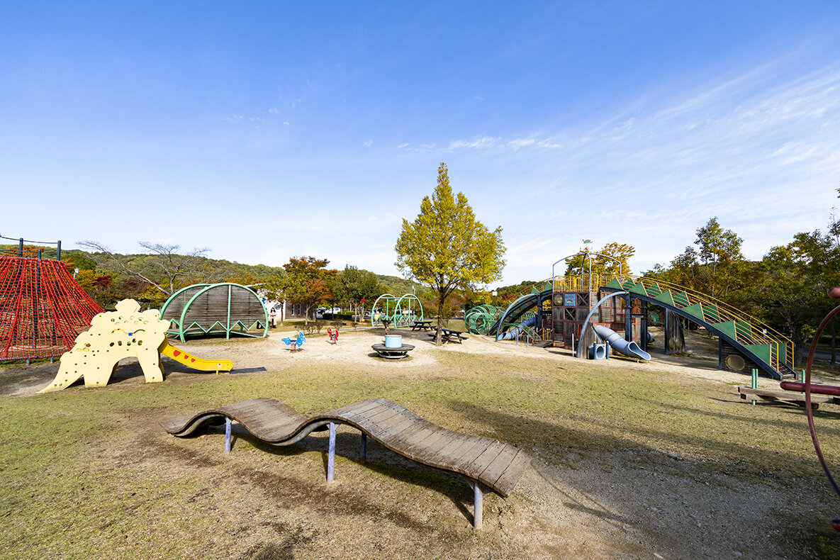 豊かな自然と古代ロマンをテーマとした公園です。グラウンド、野球場などのスポーツ施設をはじめ、噴水が整備されたふれあい広場、充実した遊具がある子ども広場、テントサイト13区画のキャンプ場などレクリエーション施設を兼ね備えています。また、付近にある長福寺裏山古墳群とはかけ橋でつながっていて、古代の人々の物語にふれながらの散策が楽しめます。