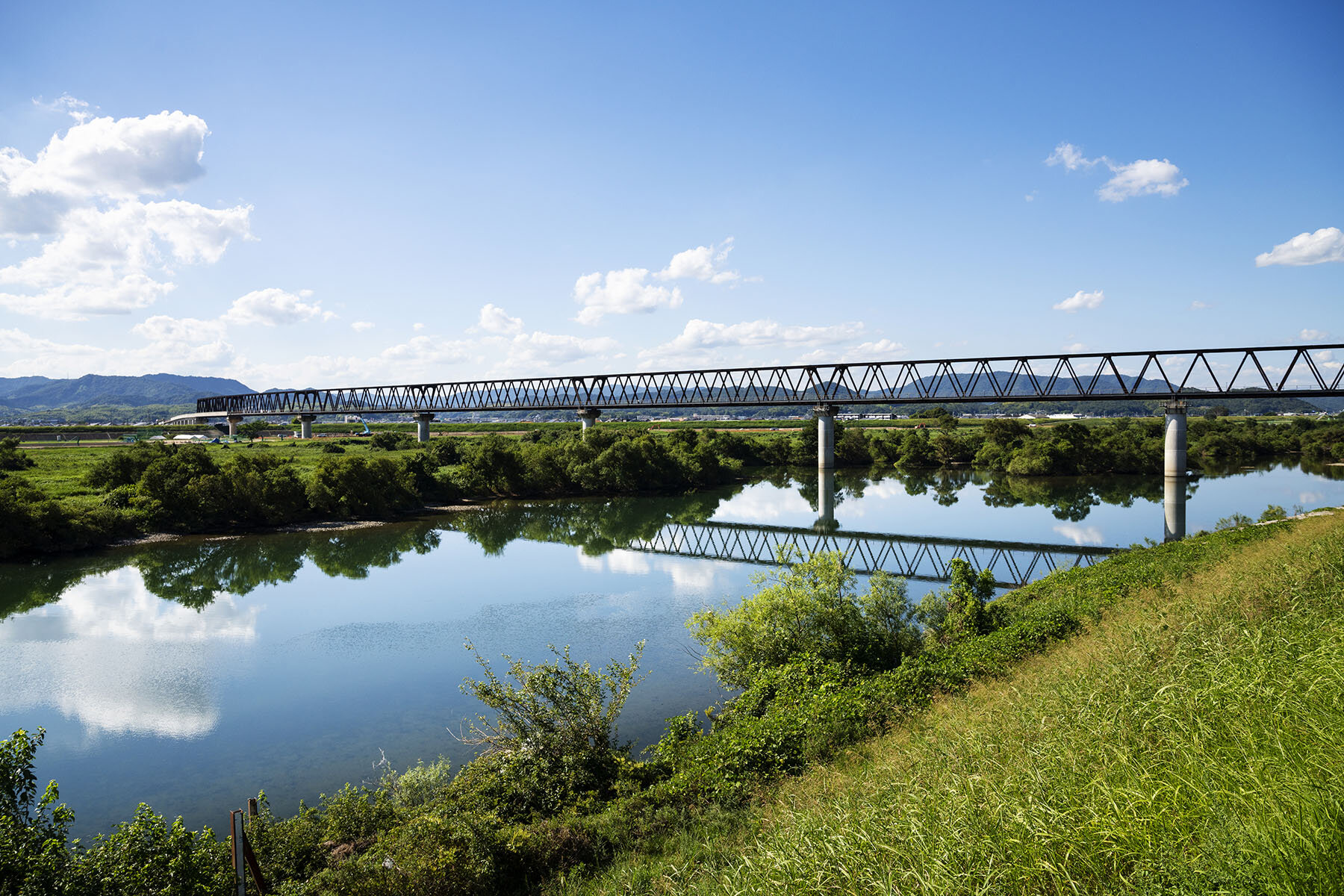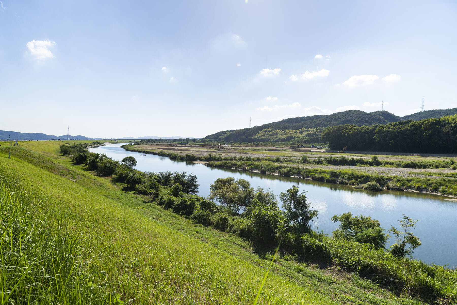 県境の明地峠(標高 755 m )に近い花見山(標高 1,188 m )の東麓(新見市)を源流とし、瀬戸内海の水島灘に注ぐ岡山県西部を流れる一級河川。吉井川、旭川とともに岡山三大河川の一つです。岡山県下で最大の流域面積を誇っています。