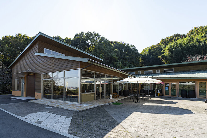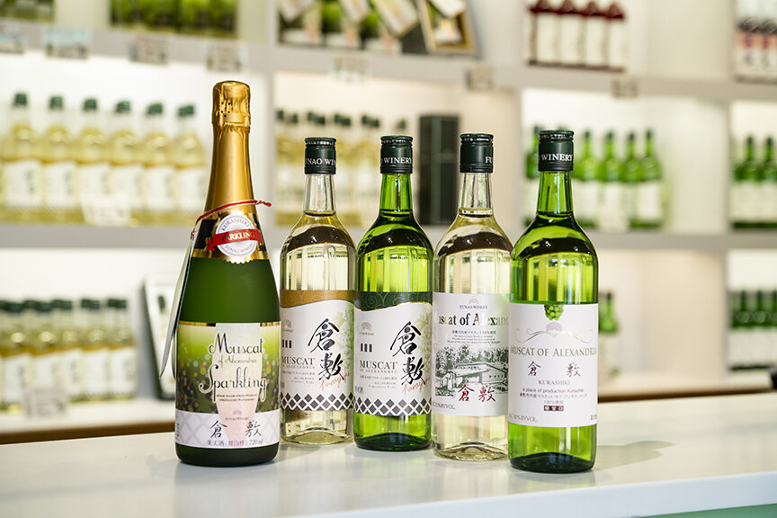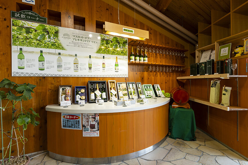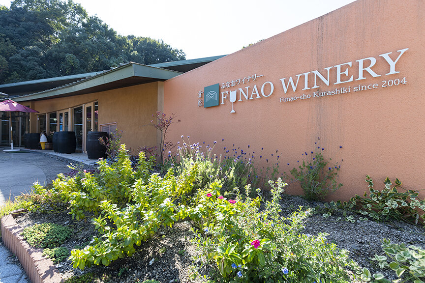 小高い山の上にあるワイン工房です。緑に囲まれた施設内では、ワインづくりの様子やマスカット栽培の歴史を見学できるほか、船穂町産の大粒マスカットのワインを試飲できます。