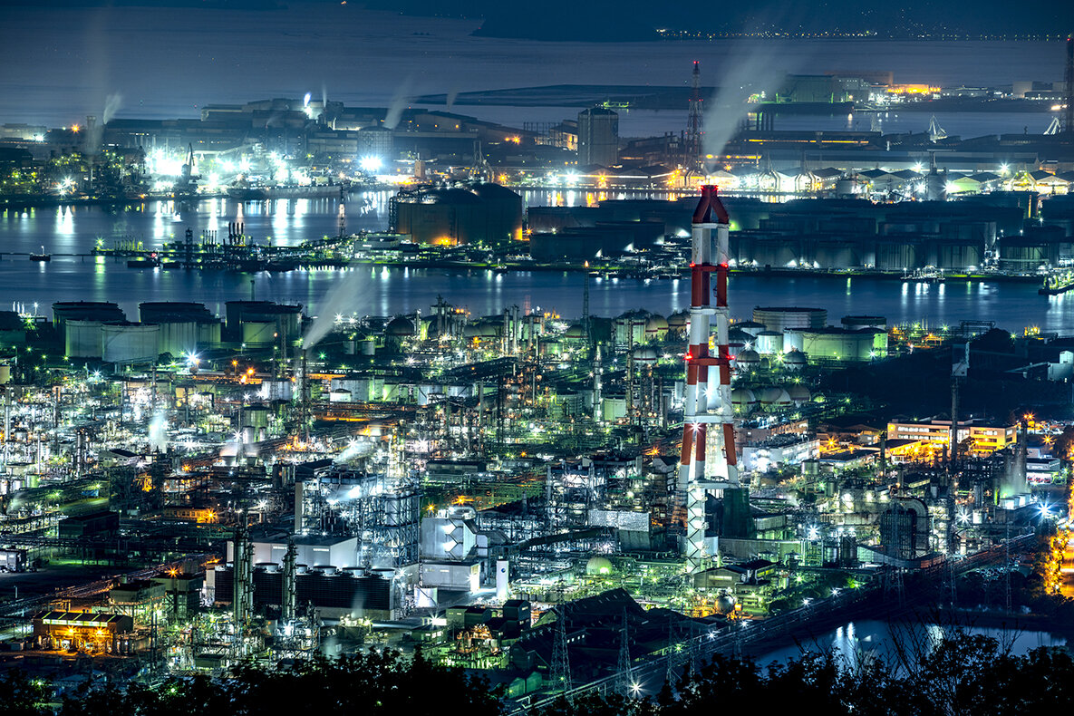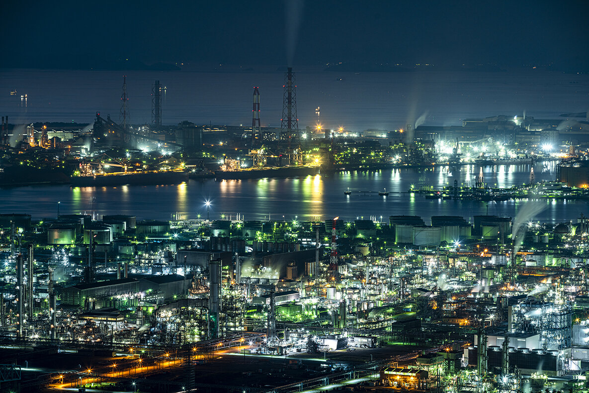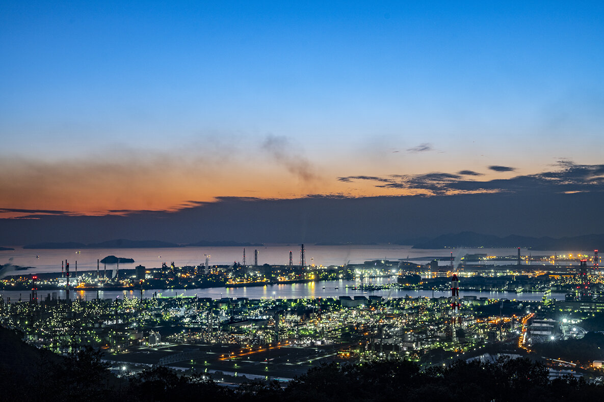 水島コンビナートは、瀬戸内海に臨む総面積約2,500ヘクタールの空間に200以上の事業所が立地します。美しく光るコンビナートの夜景は、「日本夜景遺産」及び「夜景100選」にも選ばれていて、想像を超えた感動的な景色を堪能できます。