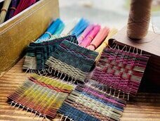畳などでおなじみの「い草」を使ったコースターの手織り体験。カ…