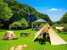 2021年春にリニューアルオープンした、木々に囲まれたキャン…